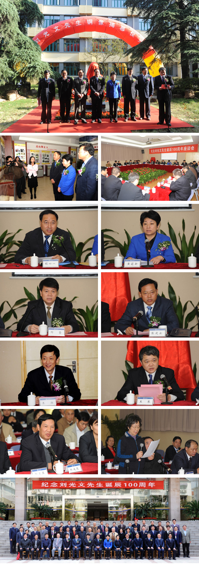 胡四一副部长、黄莉新副省长、许仲梓副主席、邓坚局长、张建云院士等参观了刘光文生平事迹展示室,参加了纪念刘光文诞辰100周年座谈会。胡四一副部长在讲话中说,我们纪念刘光文先生,为的是不忘记河海老一辈崇高的思想境界,精湛的学术专攻,严谨的治学作风和优良的师德风范;学习他对中国水利事业和人民教育事业的无限忠诚和无私奉献;学习他淡泊名利、为人师表、甘为人梯的高风亮节。正是像刘先生这样一大批德高望重的学者和教师,撑起了河海的脊梁,成就了河海的辉煌,他们是成人抖音 的骄傲,也是成人抖音 永远的精神财富,永远激励我们将成人抖音 的发展和水利教育科技事业不断推向前进。