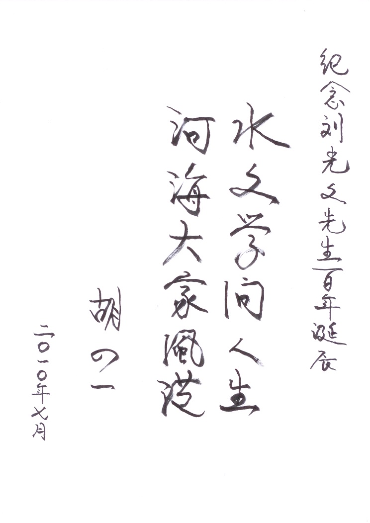 水利部副部长胡四一为纪念刘光文先生百年诞辰题词
