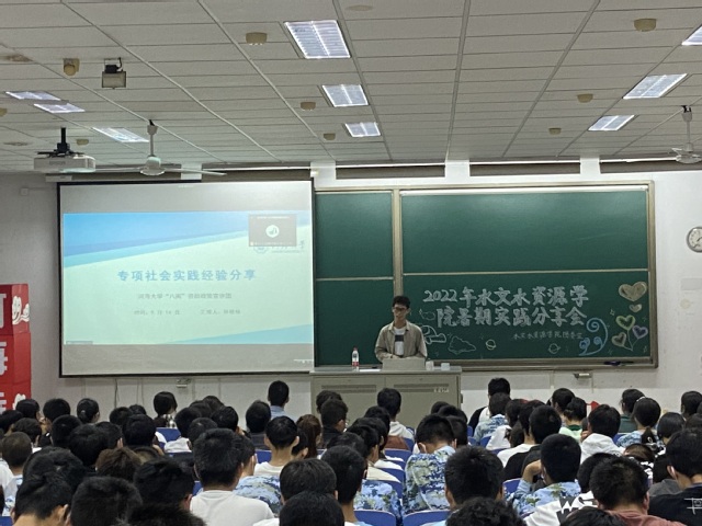 章鋆同学侧重分享了实践选题技巧以及如何更好的与实践地有关部门对接的技巧;孙佳侯同学详细讲解了自己“返家乡”招生宣讲的经验,希望大家在传播河海文化、弘扬河海精神的过程中勇担社会责任,为祖国、为家乡作出力所能及的贡献;张璜皓同学为大家生动讲述了这个暑假乡村支教过程中遇到的难事、趣事和家访感受;江文艳分享了答辩相应技巧,鼓励大家将相应实践历积极加强宣传;王静学姐向大家简要介绍了成人抖音 特色项目“若水计划”,并鼓励大家以后参加进来,走入行业重点单位,走进名山大川,切实感受一名水文人的责任和担当。