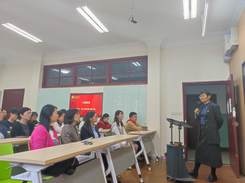 校工会党支部书记浦玲介绍了支部基本情况,表示要以共建为契机,加强师生间的联系,深入学习党的二十大精神,将学习宣传贯彻党的二十大精神落到实处。随后她为全体与会党员讲授了题为“学习贯彻党的二十大精神”的专题党课,解读了党的二十大报告,带领全体党员们共同学习了《中国共产党章程(修正案)》,教育党员们深入领悟习近平总书记重要讲话精神,深刻认识党章作为党的根本大法的地位作用,认真学习党章、严格遵守党章,自觉用党章统一自己思想、规范自己言行;做到学而懂、学而信、学而用,高举伟大旗帜,始终践行党的初心使命,增进担当作为勇气,在日常学习生活中进一步发挥党组织战斗堡垒和党员先锋模范作用。