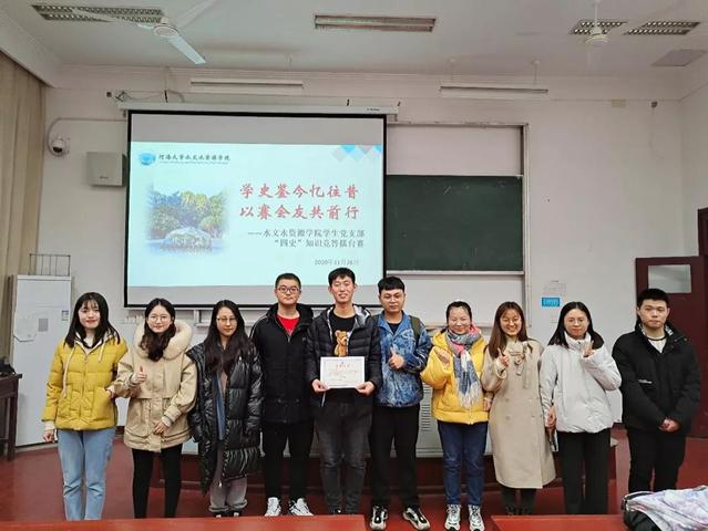 “请抢答”随着主持人发出第一道题开始抢答的指令,抢答环节正式宣布开始。抢答环节最能反映出大家对“四史”知识的深刻理解,不仅需要有丰富的“四史”知识储备量,还要快速地做出反应并给出正确答案,这绝非易事。但是这没有难住各位参赛选手,每一道题选手们的反应都十分敏捷,争分夺秒。最终,硕士生2020级水文三班党支部代表队成功夺冠,本科生水文、资环党支部和硕士生2020级土木水利三班党支部分别获得亚军和季军。