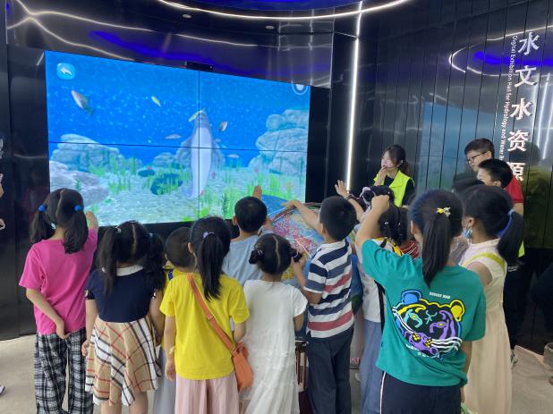 在溯源志愿者的带领下,小朋友们参观了水文史馆和数字馆,认识水文人物,聆听水文故事,了解水文观测设备,“云”浏览了三峡水利枢纽,还与“数字小江豚”热情互动。在水环教科普小课堂上,志愿者向小朋友们介绍了水在生活中所扮演的各种重要角色,与小朋友们进行了节水护水知识问答,还共同制作了节水护水小书签。完成后,小朋友们都迫不及待地展示自己的作品,分享绘画思路和活动感想。