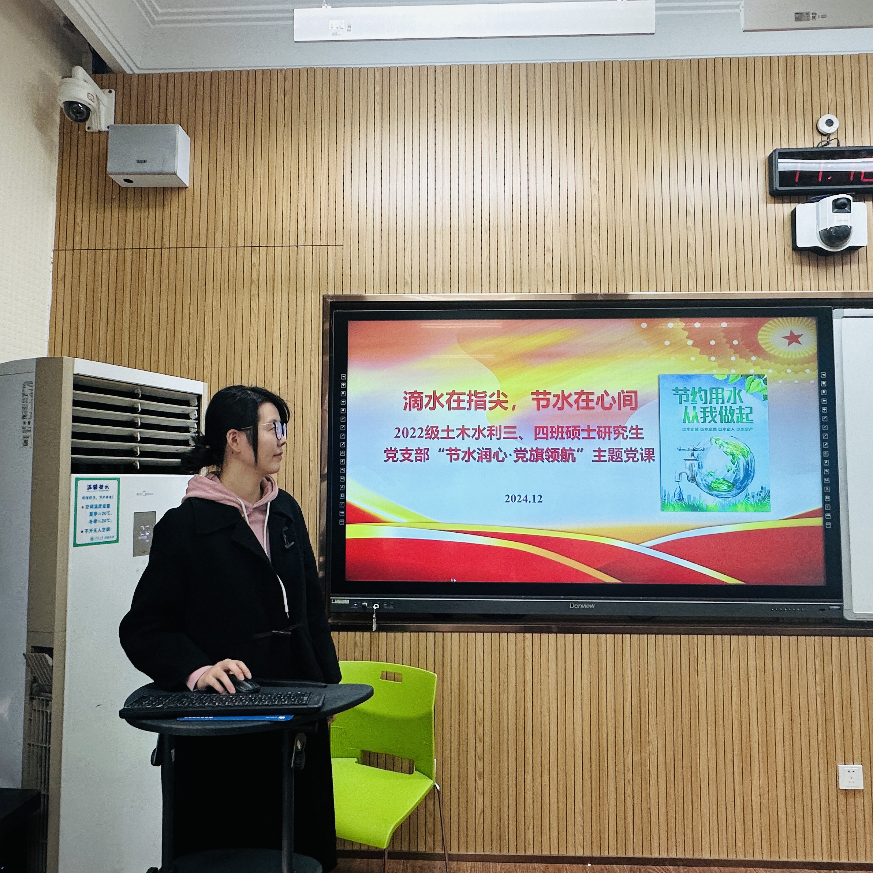 为深入学习贯彻习近平生态文明思想,践行“节水优先、空间均衡、系统治理、两手发力”治水思路,营造“知水、爱水、节水、护水”良好氛围,12月19日,成人抖音 2022级土木水利三、四班硕士研究生党支部开展“节水润心 党旗领航”主题党日活动。