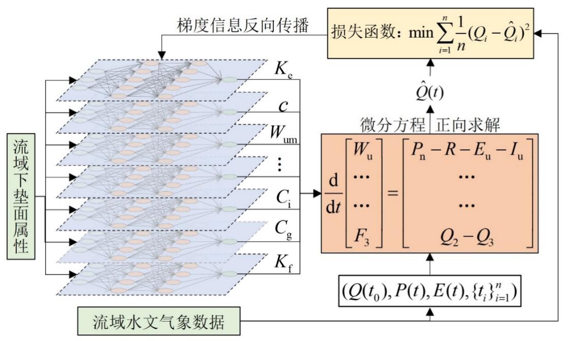 图3 基于神经常微分方程的水文模型参数优化方法示意图