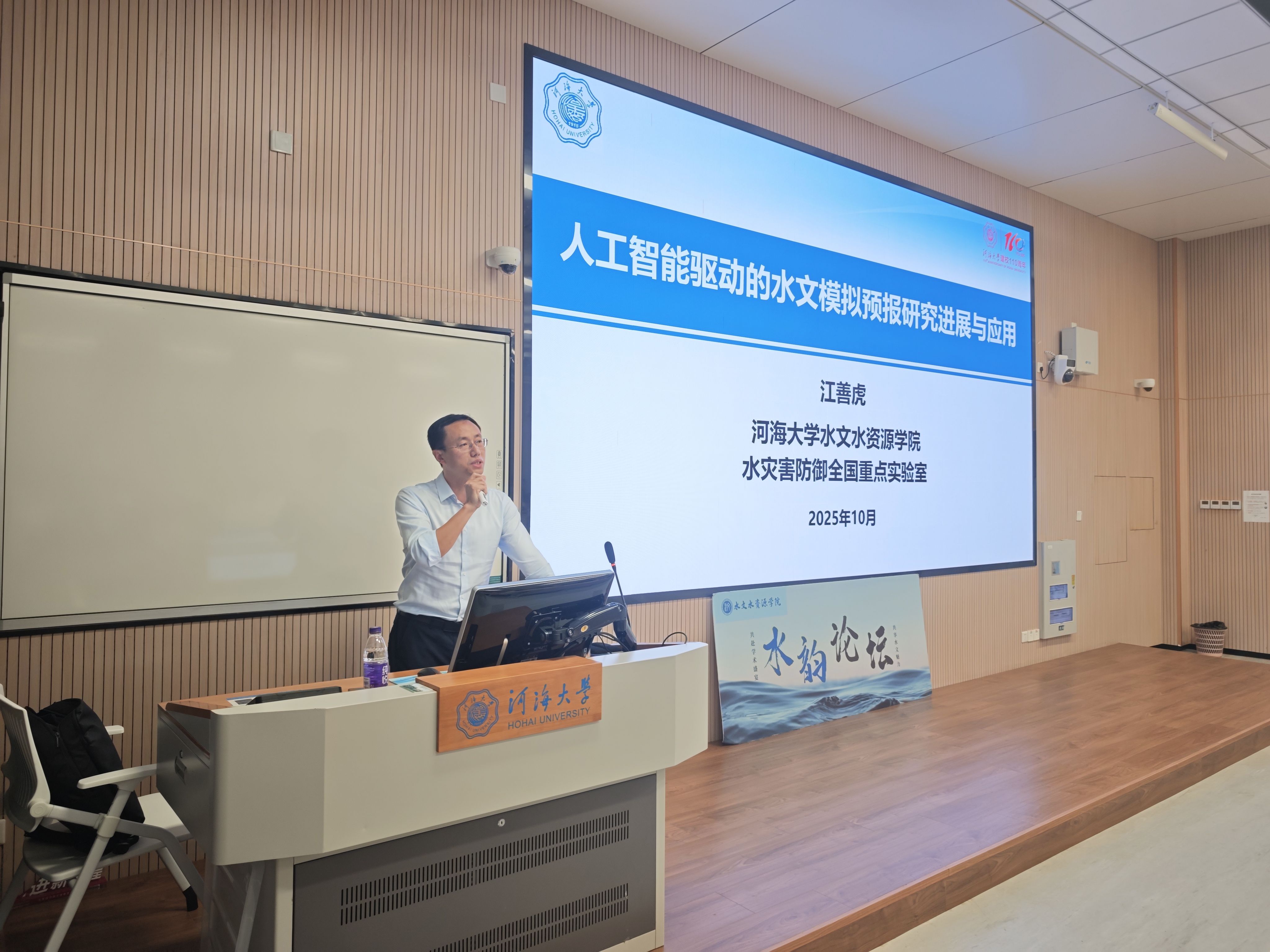 为帮助学生拓展学术视野,了解专业发展前景,明确自身发展方向,10月14日,由成人抖音 主办、湖源保护母亲河协会协办的第八十一期“"水韵论坛”在常州校区顺利举行。本次活动作为“大学生科技社团支持计划”系列活动之一,特邀学院水文与水资源工程系主任江善虎教授为2024级本科生作“人工智能驱动的水资源调度研究讲展与应用”专题学术报告。