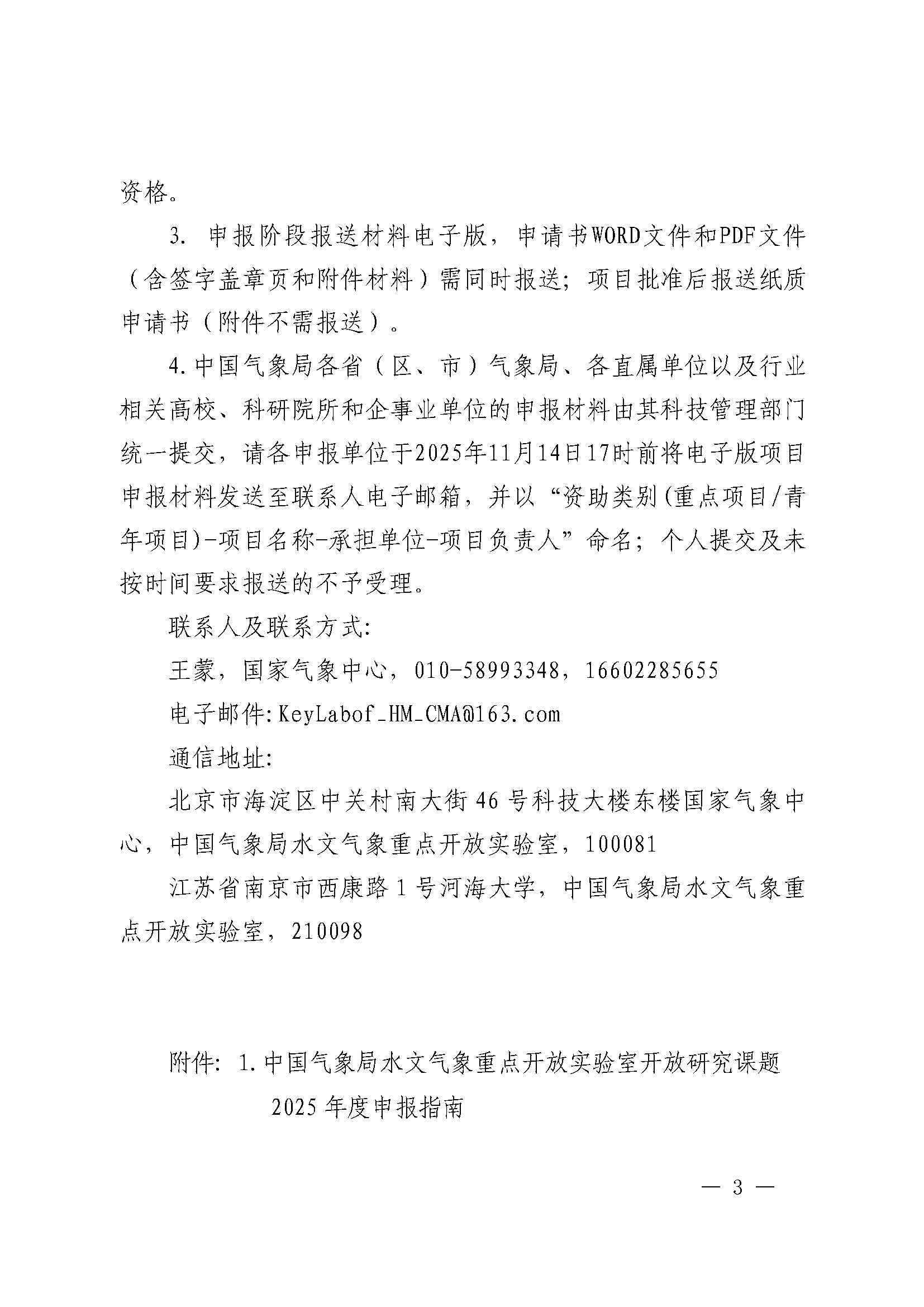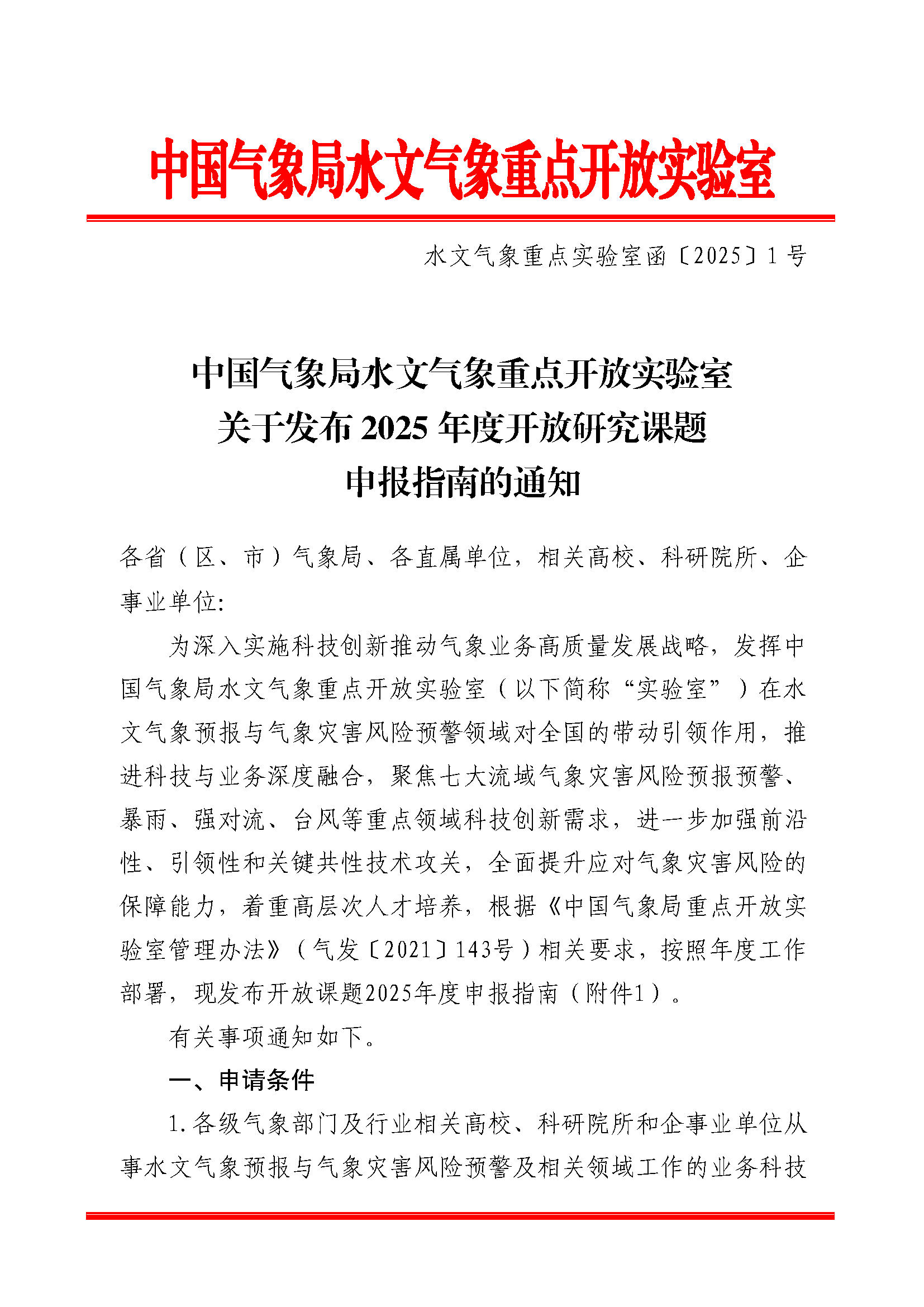附件1:中国气象局水文气象重点开放实验室2025年度开放研究课题申报指南.docx