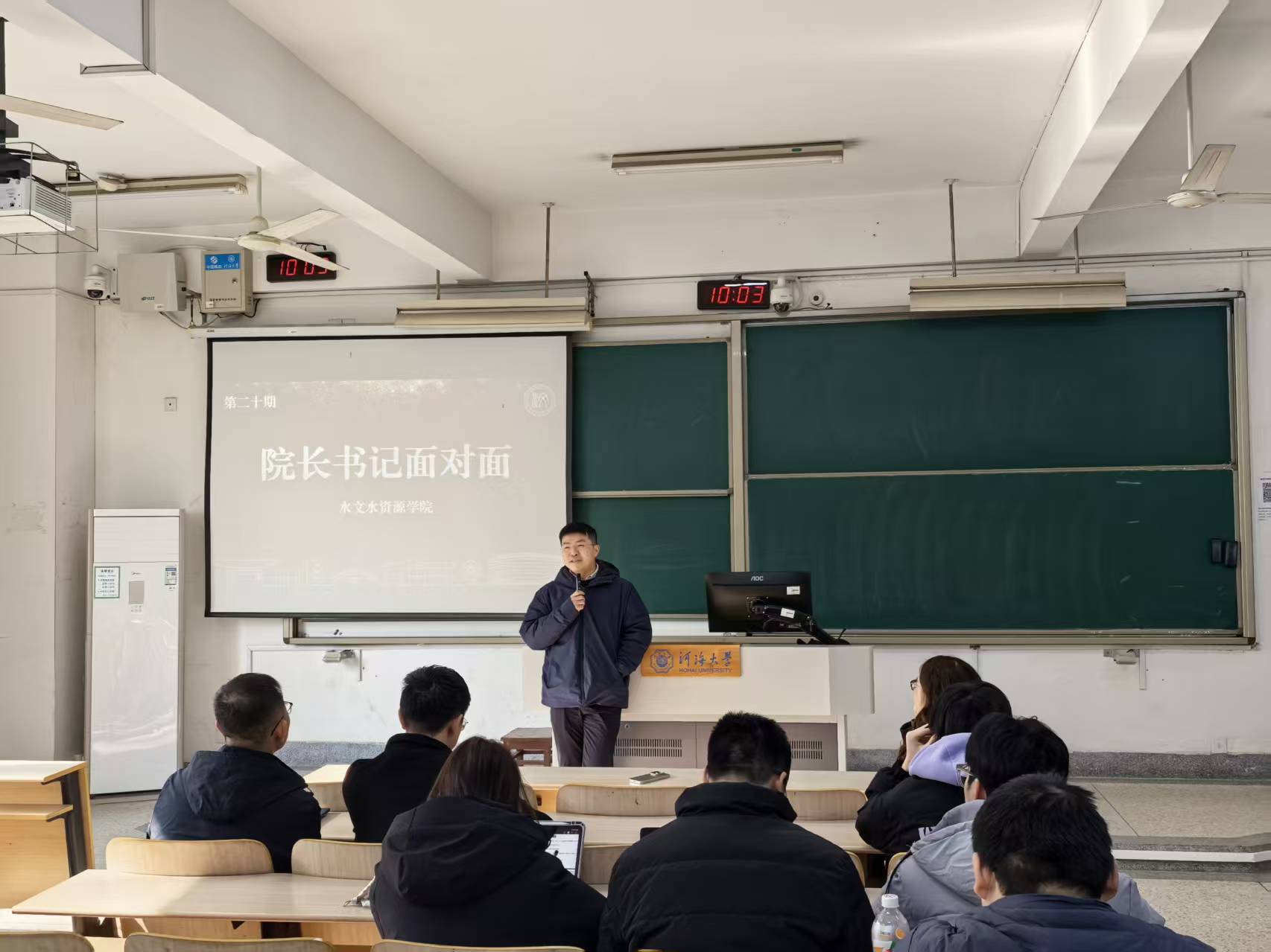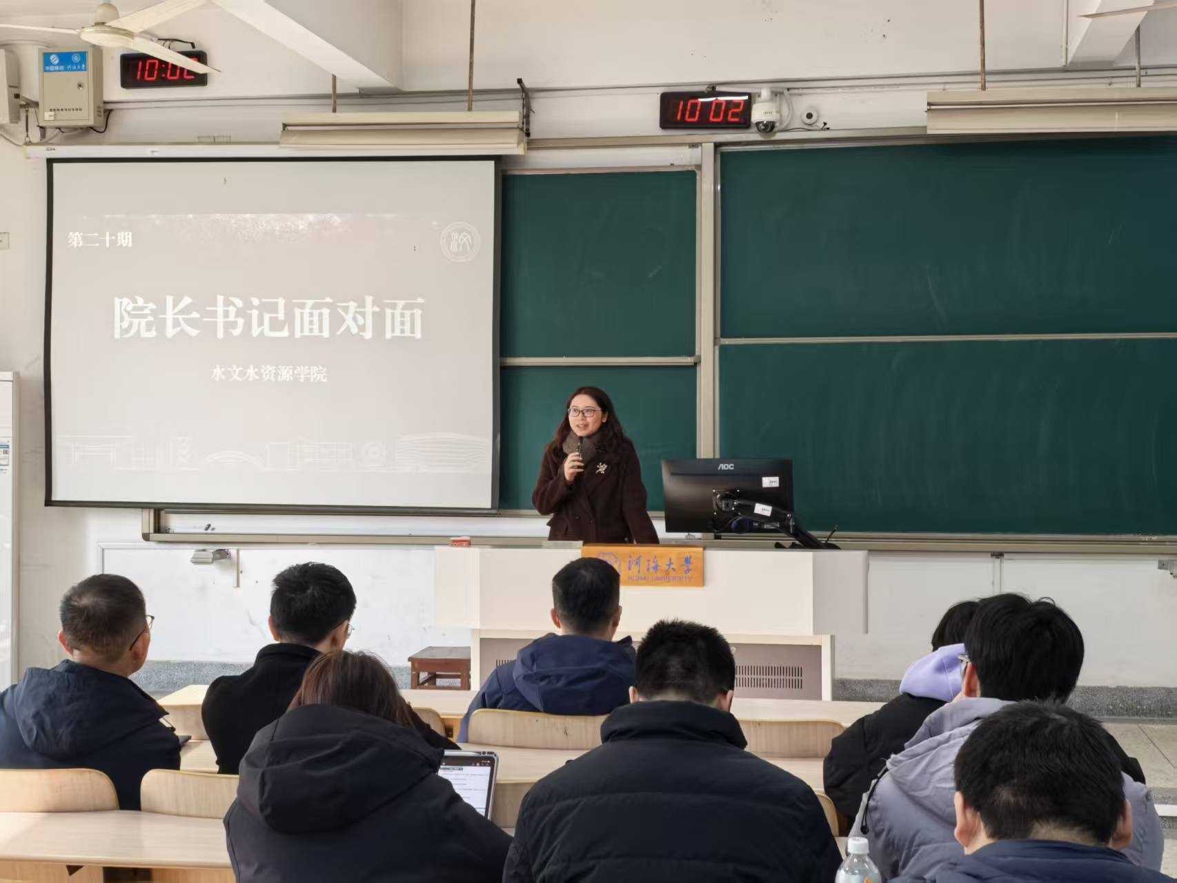 为搭建师生交流平台,在新的一年更好地与学生共同成长,2026年1月8日,成人抖音 举办了第二十期“院长书记面对面”专题交流活动。全体23级水文专业本科生参加,活动由学院党委副书记陈培玲主持。学院副院长袁山水、青年教师刘臻晨以及博士生胡睿扬参加活动并作分享交流。