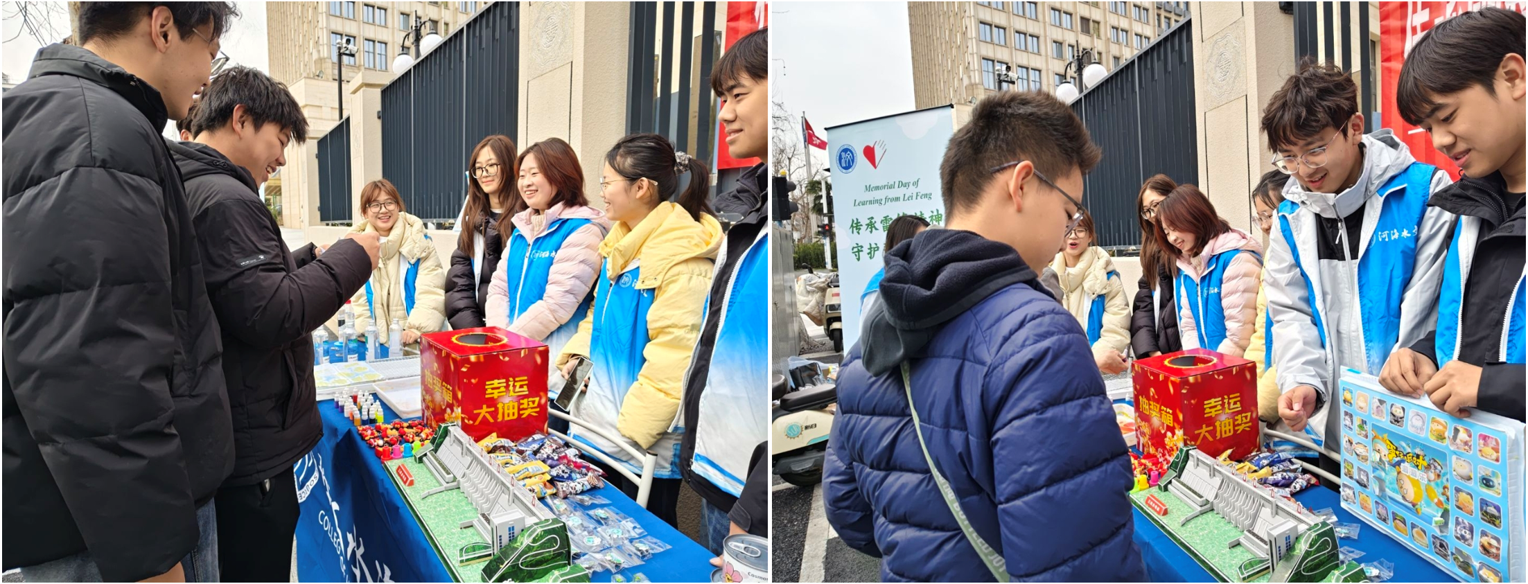 活动现场设置多个趣味科普与互动体验区,形式丰富、寓教于乐。净水装置演示区,志愿者现场操作并讲解净水原理,指导群众亲手体验,普及节水护水实用技能;水拓画创作区以水为媒,将艺术创作与水知识科普结合,让参与者在创作中感受水资源的珍贵,作品制成纪念袋赠予大家。水利工程拼图区,志愿者通过三峡水利工程立体拼图,讲解工程构造与综合效益;趣味问答区围绕雷锋精神、水文常识、生活水知识设置题目,按年龄段制定答题规则,参与者抢答赢取环保徽章、种子卡片等绿色礼品,在轻松氛围中学习知识、弘扬志愿精神。